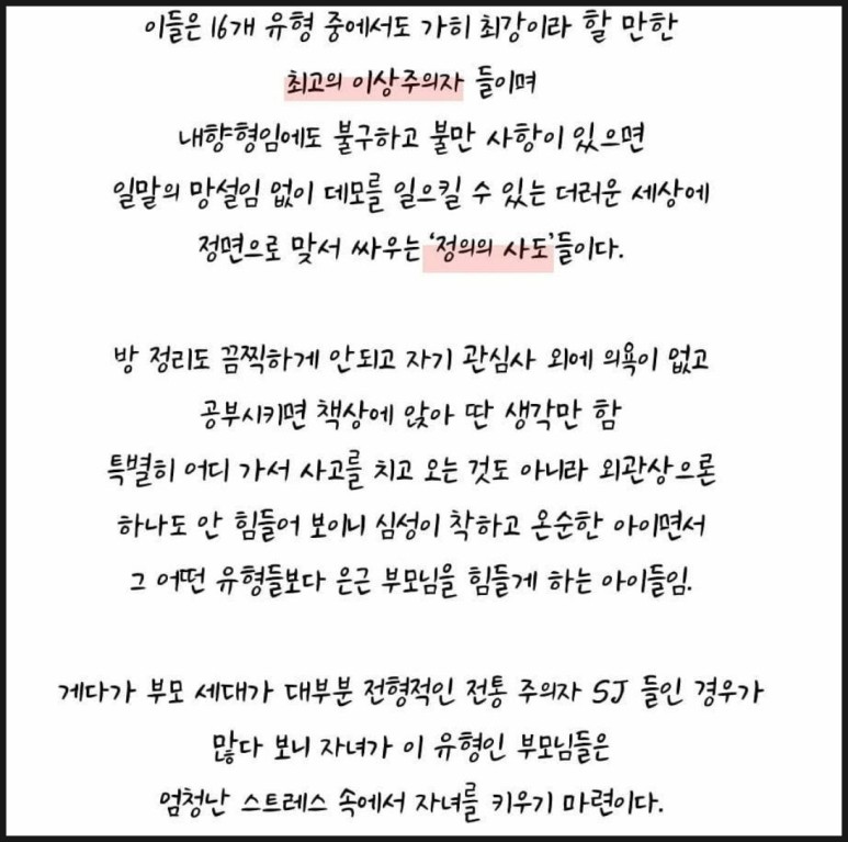 아무튼 MBTI 가 무조건적으로 옳고 과학적인 건 아니겠지만