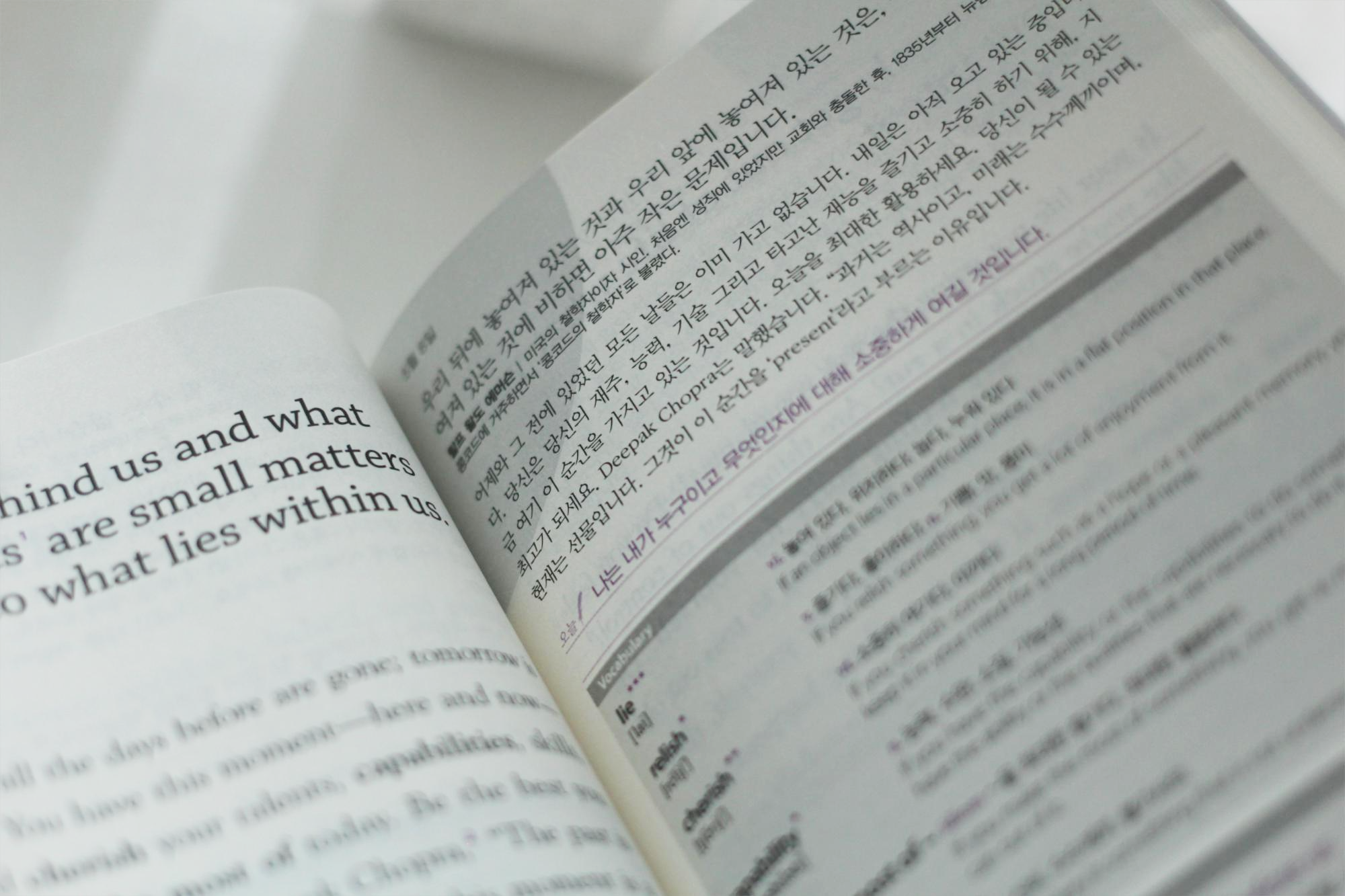 왼쪽 페이지에는 영어본문이 있고