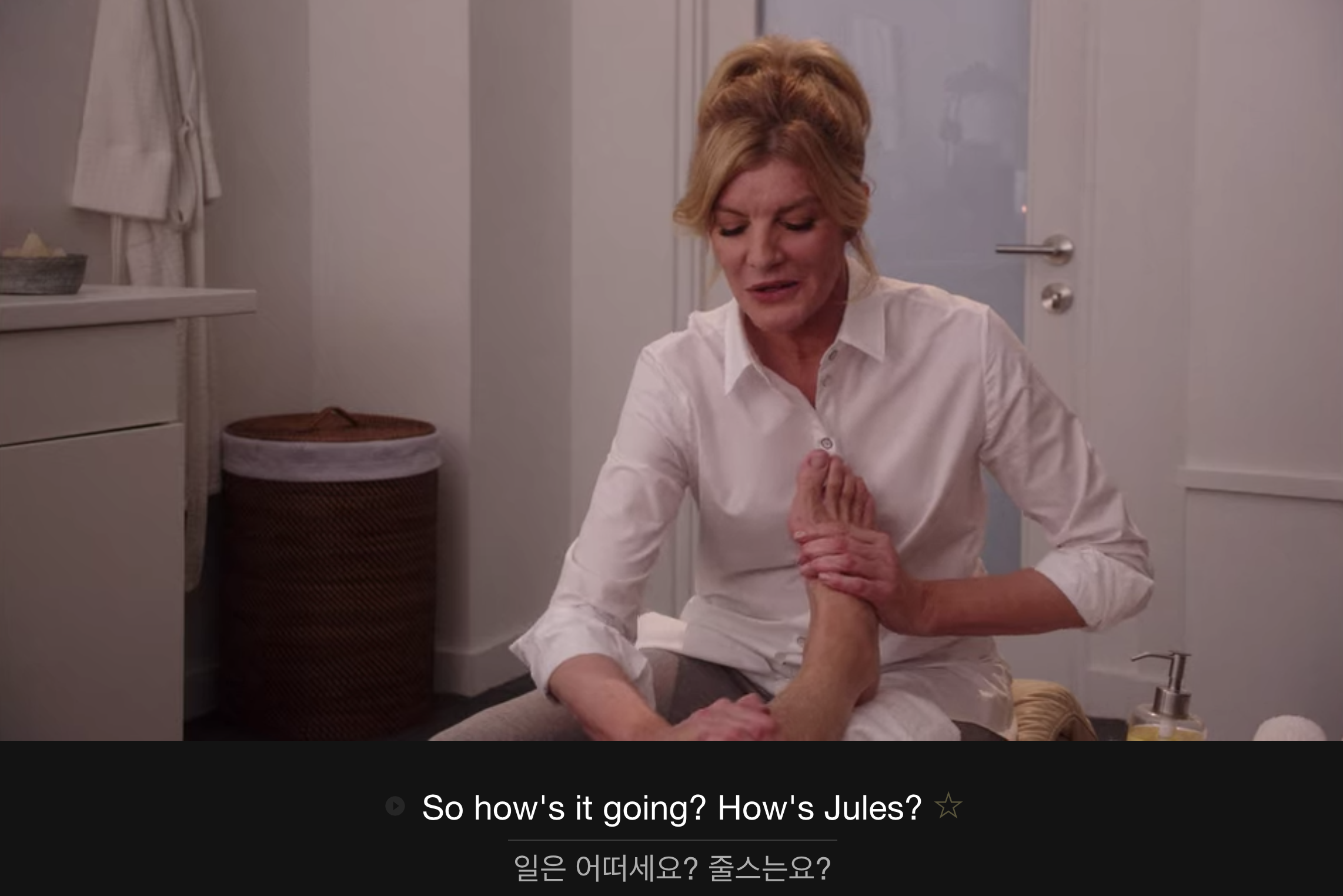 인턴을 시작한 벤에게 안부를 물어보는 전문 마사지, 피오나.